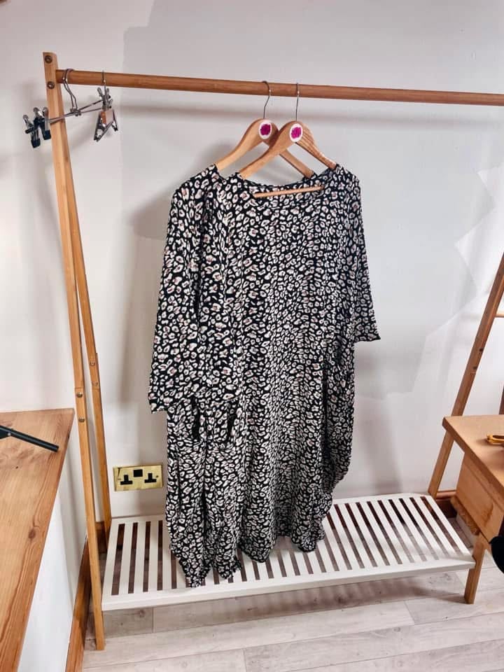 COCO - cocoon dress with pockets; non-stretch fabrics.